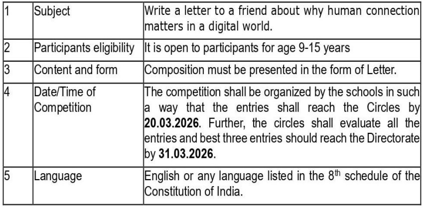 Details regarding Universal Postal Union (UPU) 2026 – Letter Writing Competition